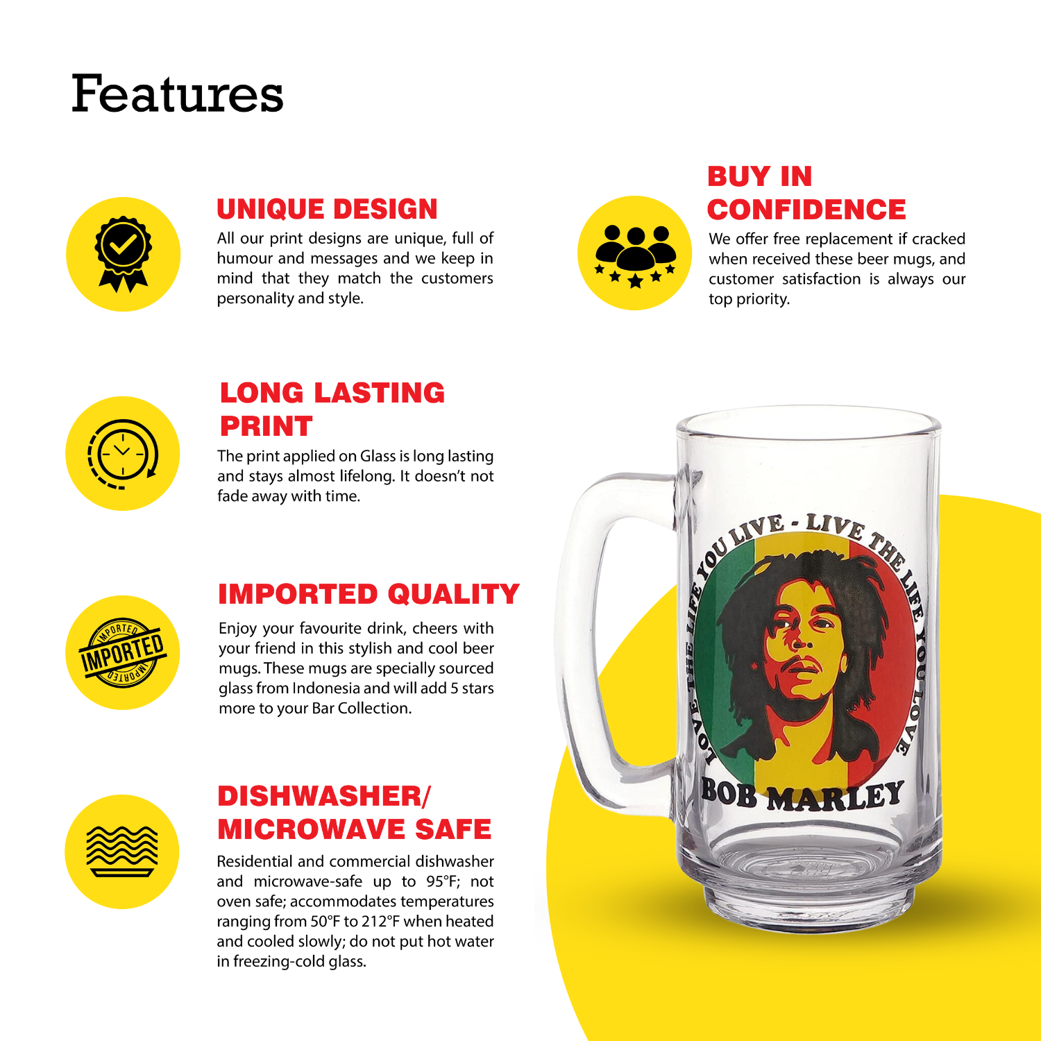 ITS HIGH TIME - A beer does not make you High only. It Enlightens you too. That's why there is this great saying- "All Beer holds the key to great wisdom and enlightenment and little delusions". These heavy bottom Mugs are perfect to party with your friend and have a gala time . Now let the party begin and invite your friend and have your Beer the way you respect it. We can assure you about the quality . These glasses are specially sourced glass from Indonesia and will add 5 stars to your Bar