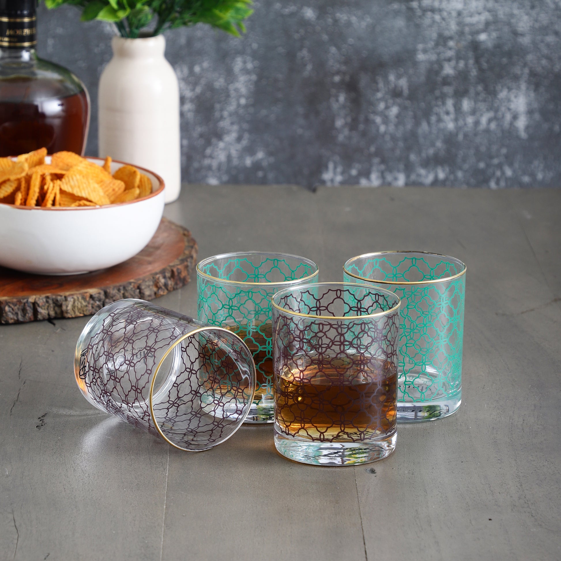 Enhance your glassware collection with the Moroccan Luxury Drinking Glasses Set. Crafted for those who appreciate fine design and function, this set of four 300 ml glasses features an elegant golden line and intricate pattern – perfect for adding a refined touch to any bar, dinner table, or party setup.